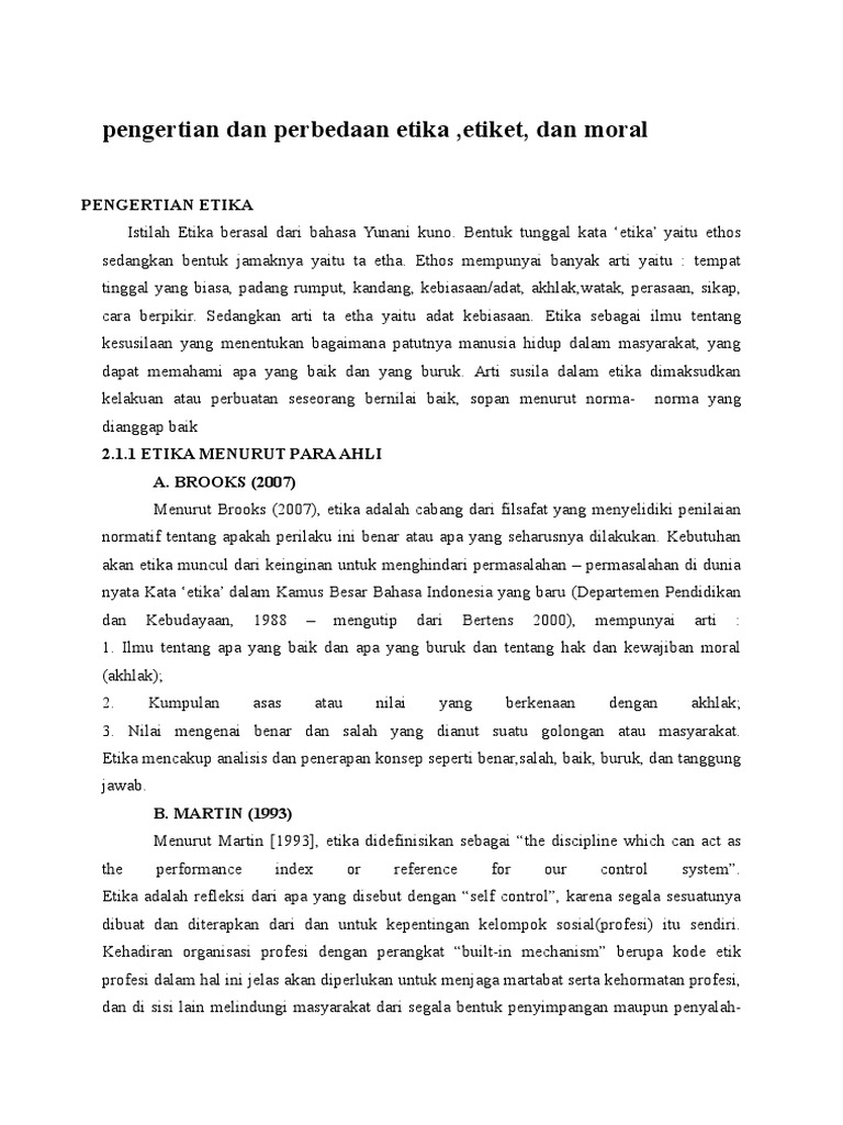 Pengertian Dan Perbedaan Etika Etiket Dan Moral from imgv2-1-f.scribdassets.com Dosen filsafat fak ushuluddin iain surabaya. Moralitas lebih condong pada pengertian nilai baik dan buruk dari setiap perbuatan manusia itu sendiri, sedangkan etika berarti ilmu yang mempelajari tentang baik dan buruk. Pengertian akhlak, moral, etika, dan etiket. Etika merupakan nilai dan norma moral yang jadi suatu acuan buat manusia secara baik individual atau kelompok dalam mengatur semua tingkah lakunya. Pengertian, contoh, persamaan etika dan, menurut para ahli, tujuan, konsep, sebutkan etiket di kantor, macam : Beda dengan yang lainnya, aristoteles mendefinisikan etika menjadi 2 pengertian, yaitu terminius technicus dan manner and cutom. Akhlak secara bahasa berasal dari kata khuluk yang berarti perangai, tingkah laku atau tabiat. Desember 27, 2017 desember 11, 2017 oleh sidrotul muntaha.